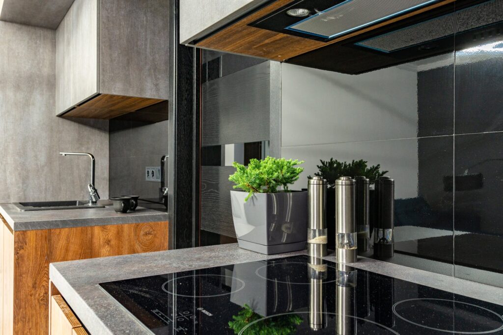 Trwałe materiały w połączeniu z geometryczną precyzją, którą stosujemy przy produkcji kuchni na wymiar, dodadzą elegancji i wyrafinowanego tonu całej przestrzeni.