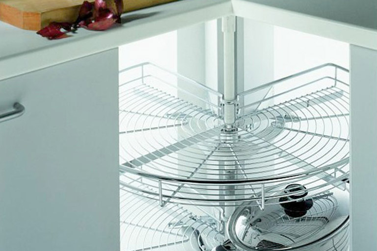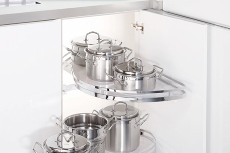 Ułatwia dostęp do przestrzeni narożnika. Do przechowywania garnków lub większych naczyń.