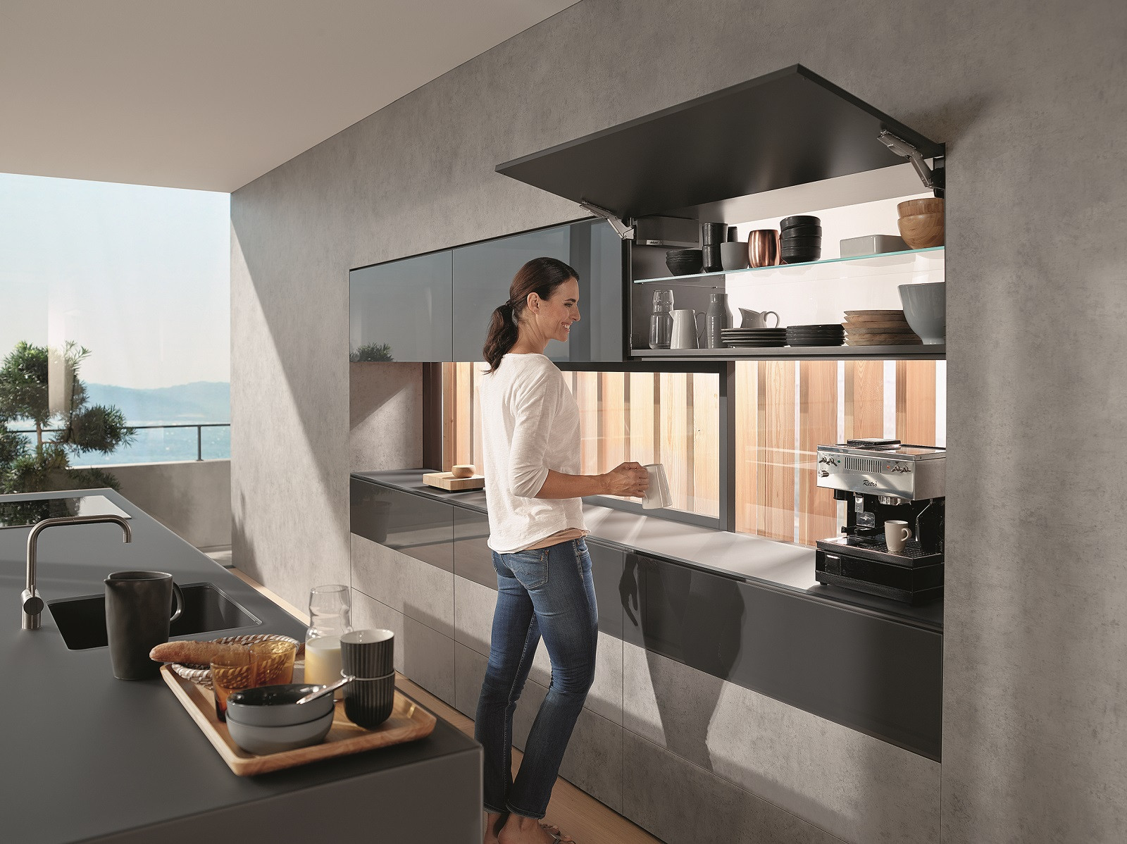 Dzięki łatwemu i intuicyjnemu otwieraniu zapewnia komfortowy dostęp do szafki górnej.