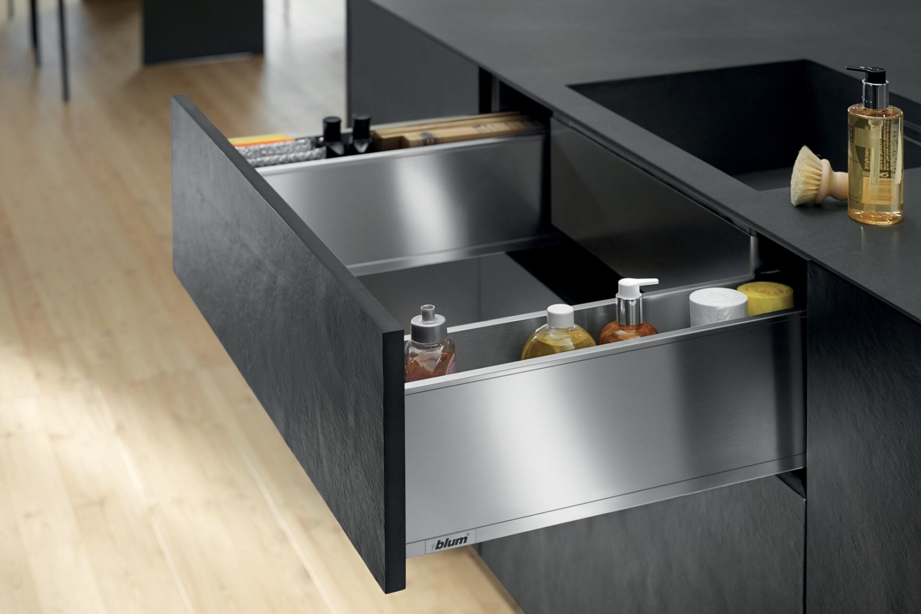 Wyraźny kontur i gładkie boki, których grubość wynosi jedynie 12.8 mm zapewnia szufladzie płynny i dynamiczny ruch.